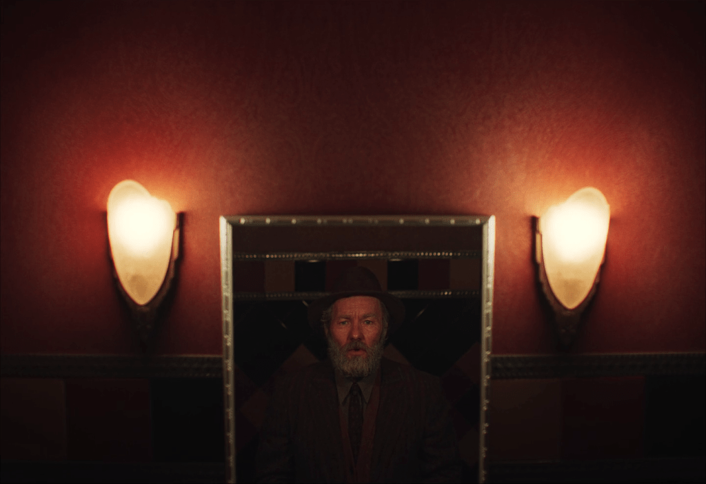 Incluso la escena en la que se mira al espejo no estaba prevista originalmente. La descubrimos. Nuestro diseñador de producción, Alex Schaller, fue al baño del sótano y volvió con Adolfo. Le dijo: «Tienes que grabar algo. No me importa qué sea. Graba algo en este baño. Es increíble». Eso dio pie a que, en lugar de verse reflejado en el espejo, pudiera apreciar el paso de los años.