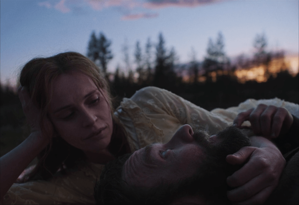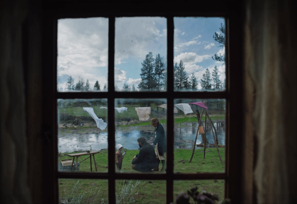 Otro cambio es el personaje de Claire, interpretado por Kerry Condon. Hay un personaje llamado Claire Thompson en el libro, pero es una viuda a la que él transporta en su carreta a otro lugar. Solo tienen un par de líneas de diálogo. No hay mucho más. Esto nos lleva a esa gran escena en el balcón, donde ella dice: «El mundo necesita un ermitaño en el bosque tanto como un predicador en el púlpito». Recuerdo que fue una de esas escenas en las que sentí una especie de revelación, algo así como: ¿esto está bien o no? Tomar el espíritu de ese personaje y esa frase, y luego usar el resto para decir cosas que quería decir sobre el duelo, la ecología y todas esas cosas que Kerry transmite tan bellamente.