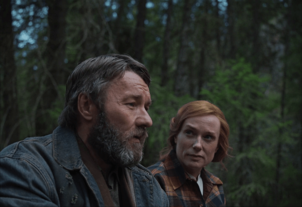 Dado que estábamos adaptando esta obra, escuchábamos el audiolibro de Train Dreams, narrado por Will Patton, cada vez que conducíamos por esa zona. Ahora él narra la película, y eso le daría un nuevo contexto a todo. Abriría y recontextualizaría aspectos que habíamos leído repetidamente en el texto. Subiríamos a una cordillera nevada, entre un bosque de árboles centenarios, y sentiríamos cómo cambia el aire y la sensación de estar en un lugar profundamente espiritual. O conduciríamos de noche y veríamos una quema controlada gigante, sintiendo su inmenso poder incluso en ese entorno controlado. Eso podría transportarnos a imaginar cómo se veía y se sentía el fuego en la novela.