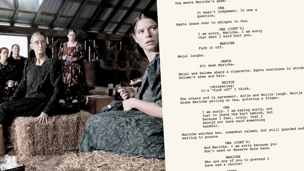 Extracto de Ellas Hablan, novela de Miriam Toews y escena correspondiente de la película.